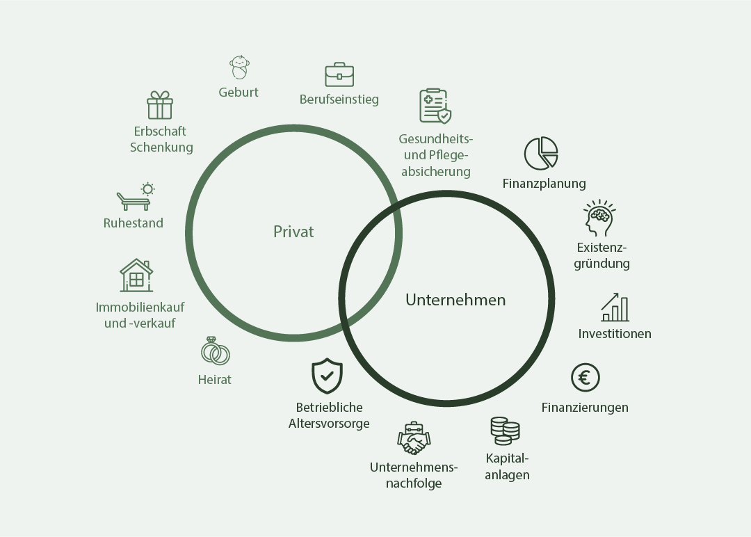 Zur ganzheitlichen Finanzplanung gehören u.a. die Anlageberatung, Vorsorgeberatung, Finanzierungsberatung und die Analyse aller Einnahmen und Ausgaben.